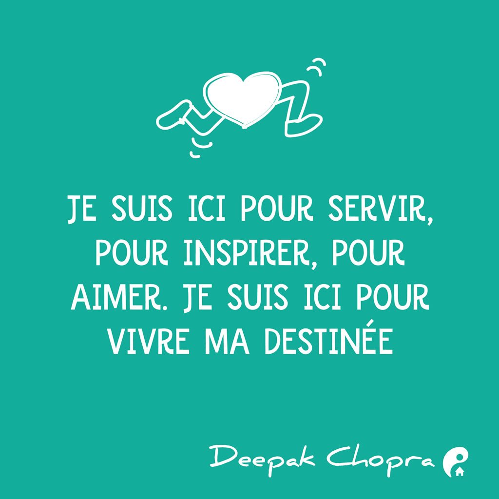 Je suis ici pour servir, pour inspirer, pour aimer. Je suis ici pour vivre ma destinée. (Deepak Chopra)